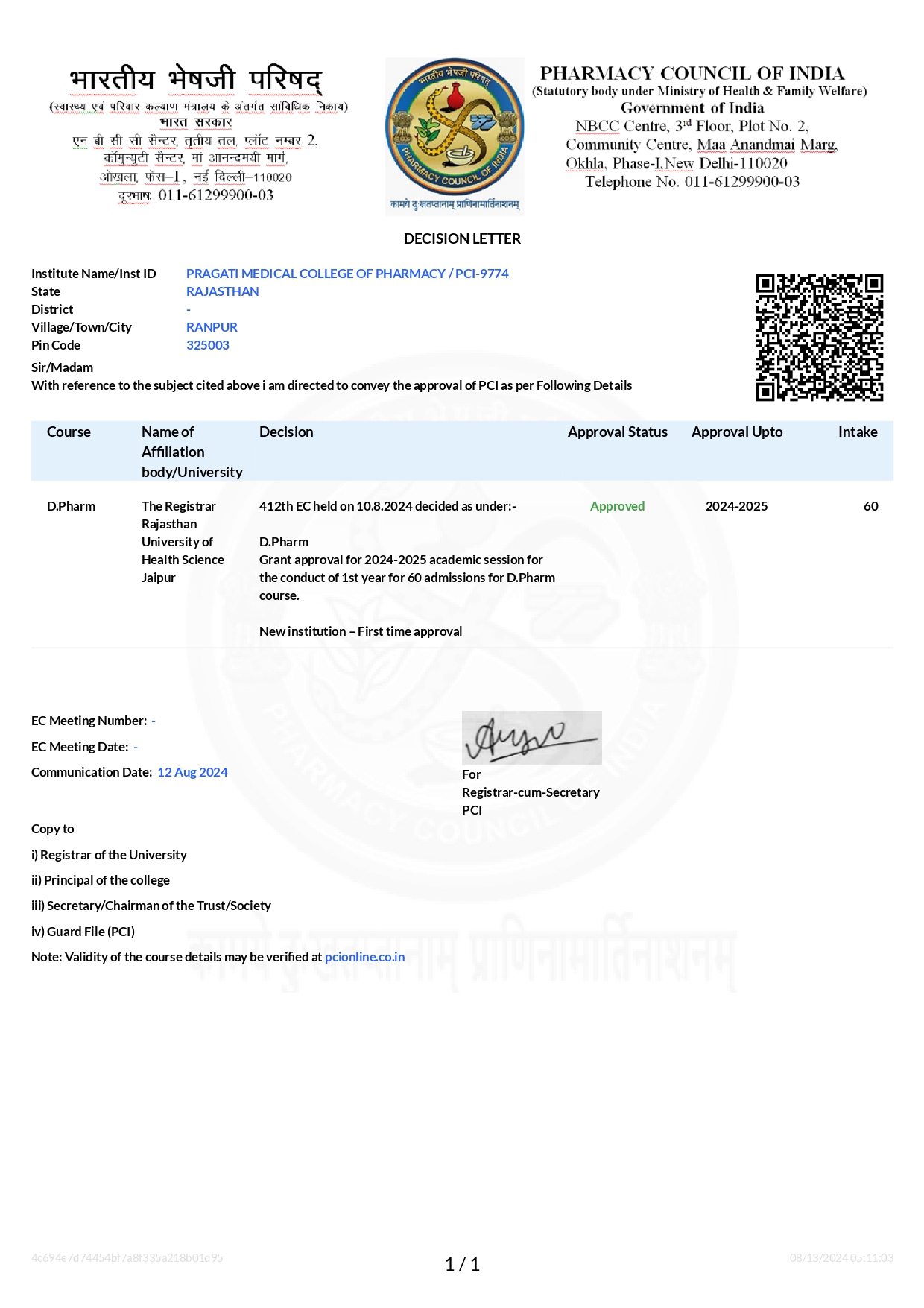 Approved by Pharmacy Council of India (PCI), New Delhi